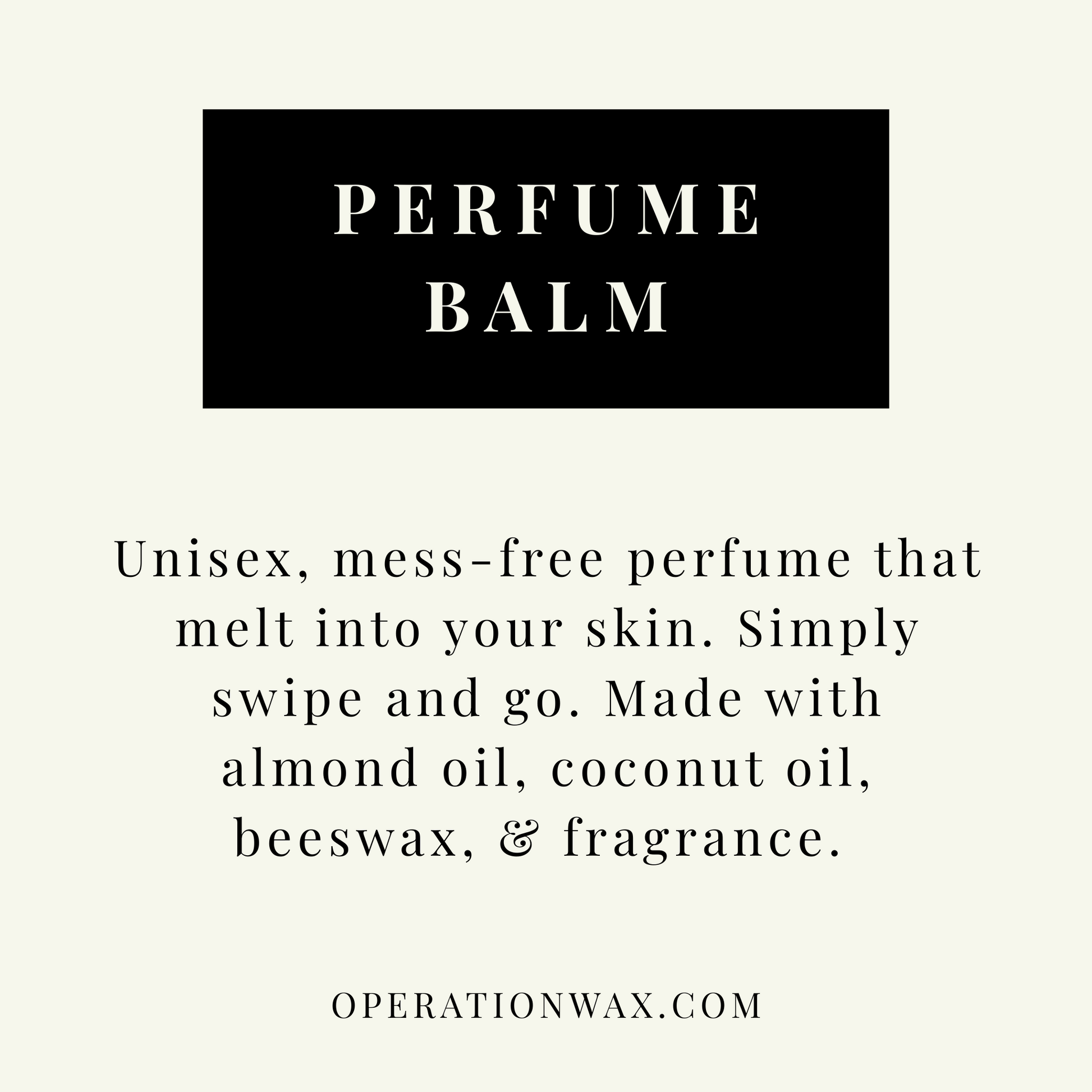 Our Perfume Balms are mess-free and gently melt into your skin, creating a long-lasting personal scent. Each 0.5 oz container is perfect for travel or everyday wear.